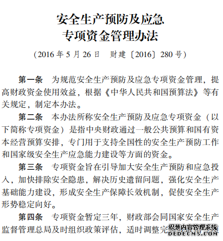 安全生產(chǎn)預(yù)防及應(yīng)急 專(zhuān)項(xiàng)資金管理辦法