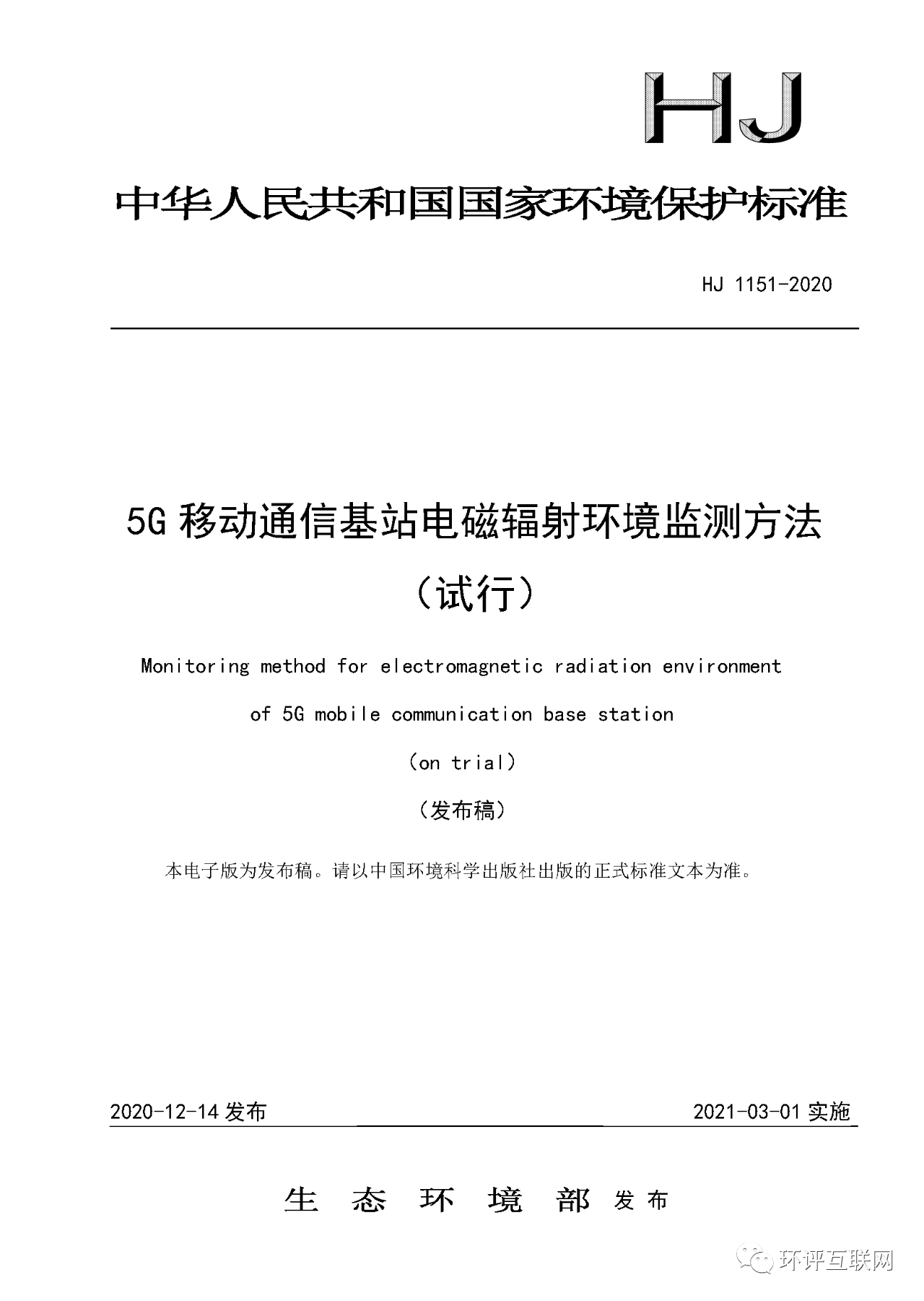 一、《5G移動(dòng)通信基站電磁輻射環(huán)境監(jiān)測方法(試行)》(HJ 1151-2020)
