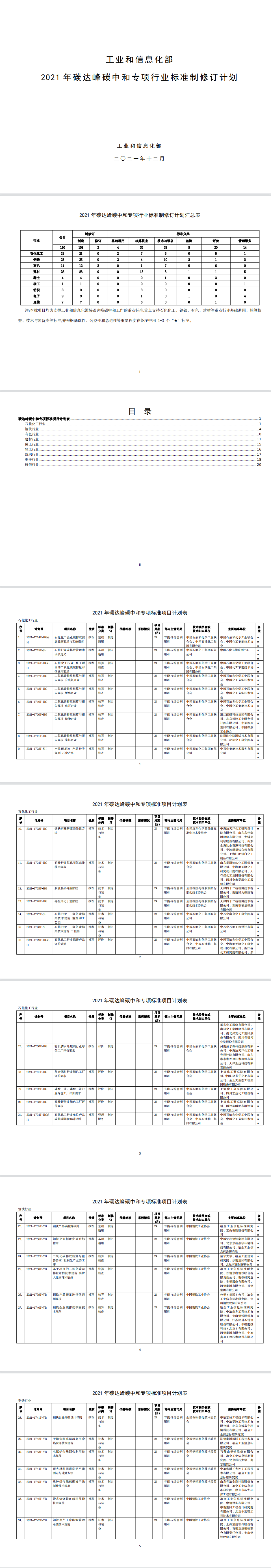 為發(fā)揮標準在推進工業(yè)領(lǐng)域碳達峰碳中和工作的引領(lǐng)和規(guī)范作用,我部編制完成了2021年碳達峰碳中和專項行業(yè)標準制修訂項目計劃?,F(xiàn)印發(fā)給你們,請認真組織落實。有關(guān)事項通知如下:
