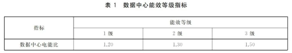 該標準規(guī)定了數據中心的能效等級與技術要求、統計范圍、測試與計算方法。數據中心能效等級共分為3級,1級表示能效最高;3級能效為數據中心能效限定值。