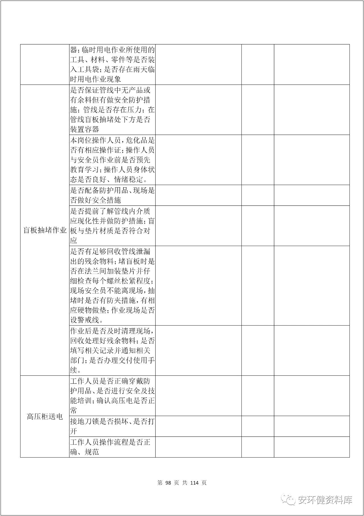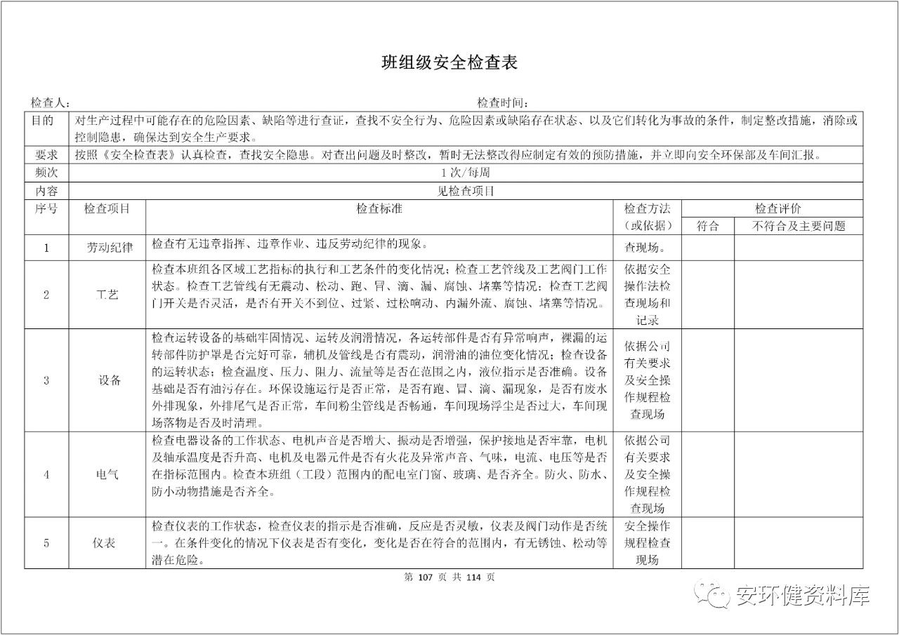 【尖貨】100多頁隱患排查表,附標準依據(word版)