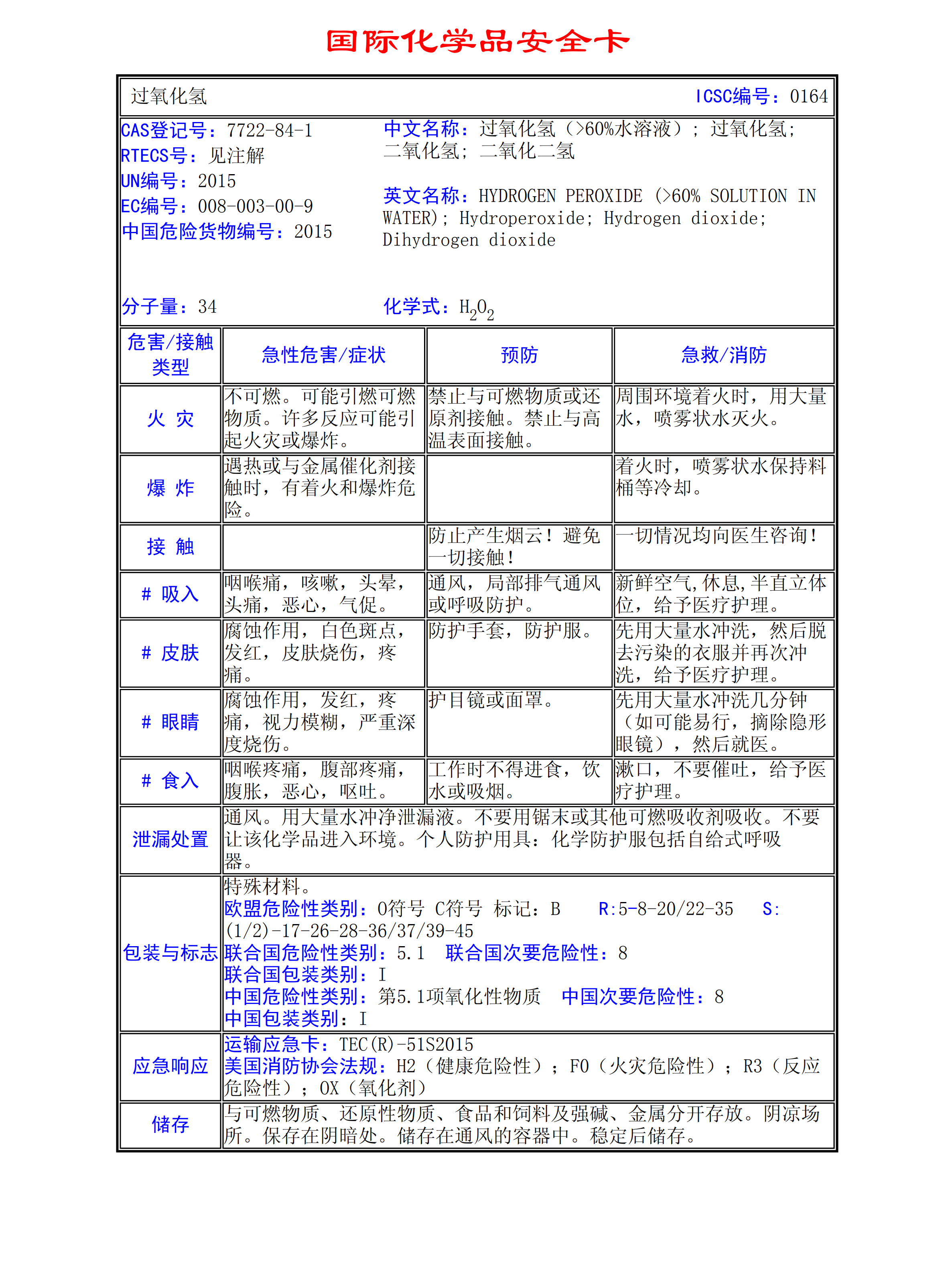 過(guò)氧化氫MSDS