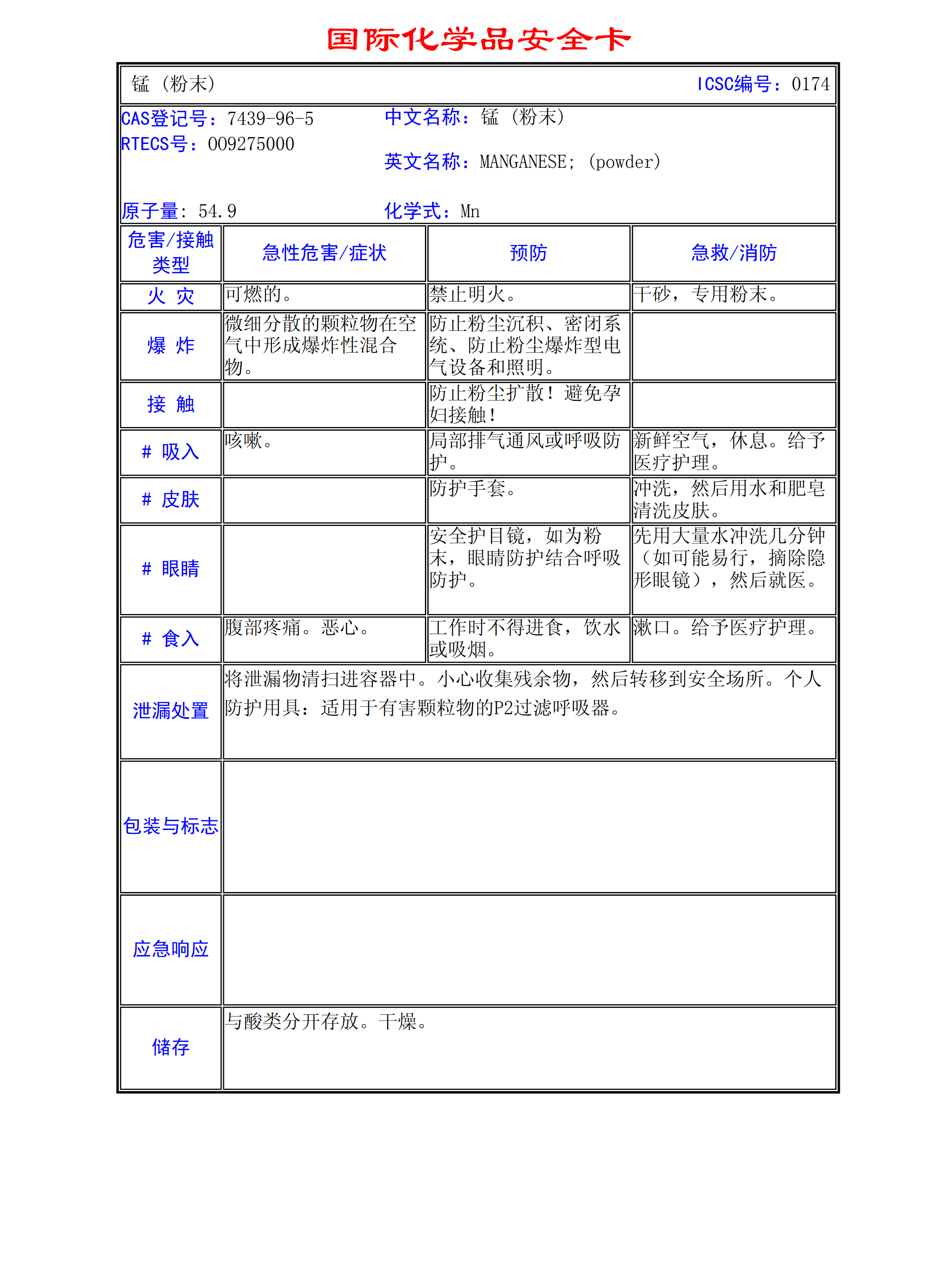 錳(粉末)MSDS