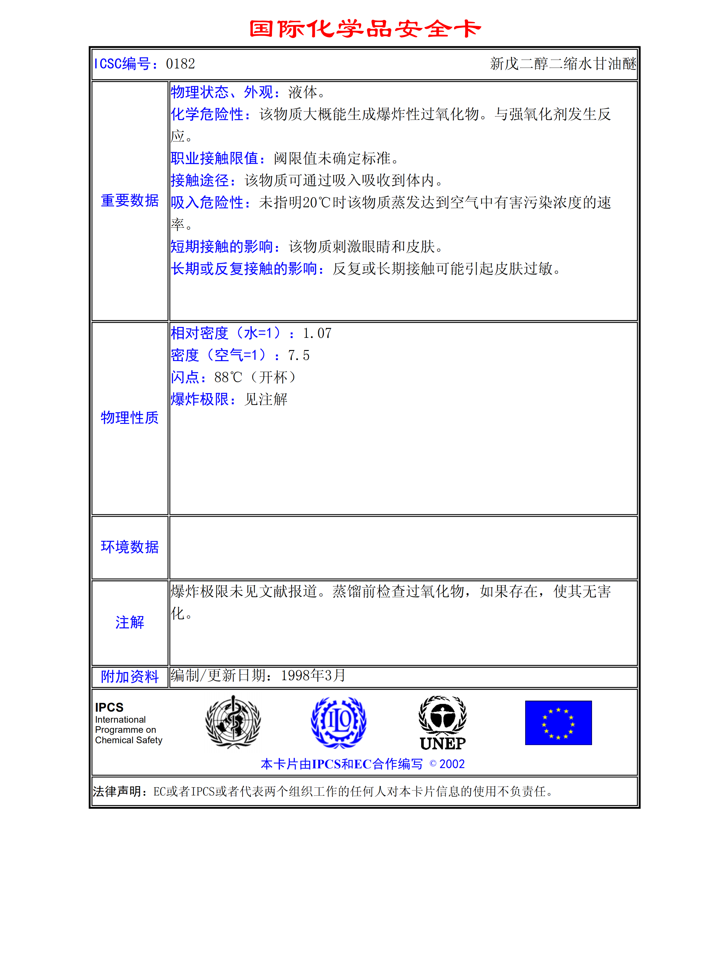 新戊二醇二縮水甘油醚MSDS