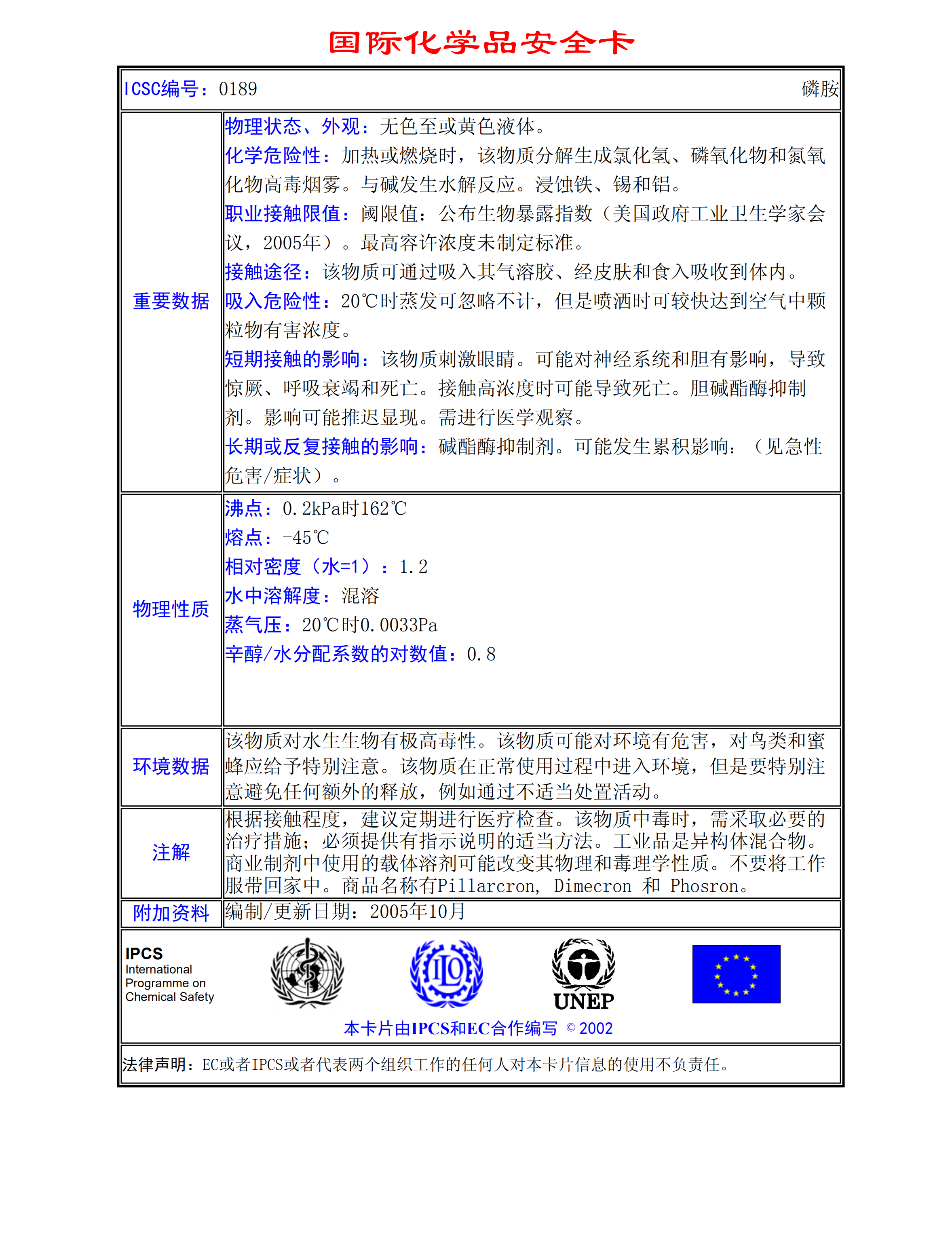 磷胺MSDS