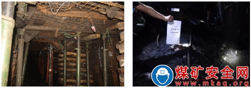 巷道支護系統(tǒng)沒有承受住強動載沖擊。事故巷道沿底板托頂煤掘進,上部為頂煤和泥巖組成的復(fù)合頂板,節(jié)理發(fā)育,受到?jīng)_擊后易碎脹破壞。從事故現(xiàn)場情況看,礦井按照《煤巷錨桿支護技術(shù)規(guī)范》設(shè)計的巷道支護,但這次沖擊載荷超過現(xiàn)支護的承載能力,造成事故區(qū)域巷道破壞。