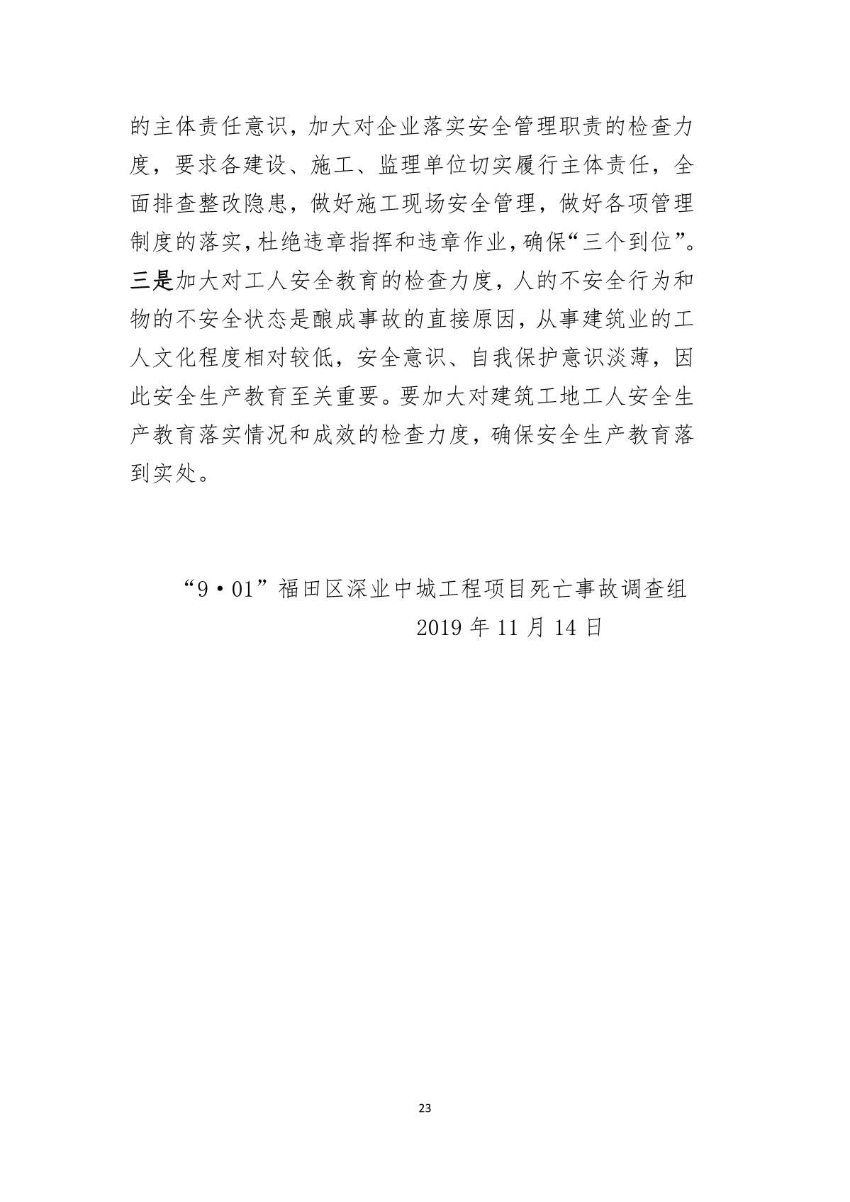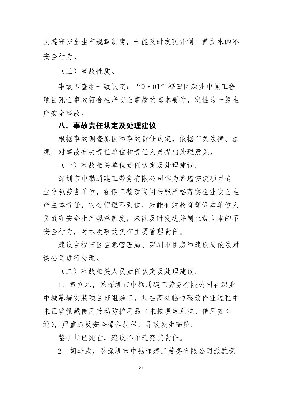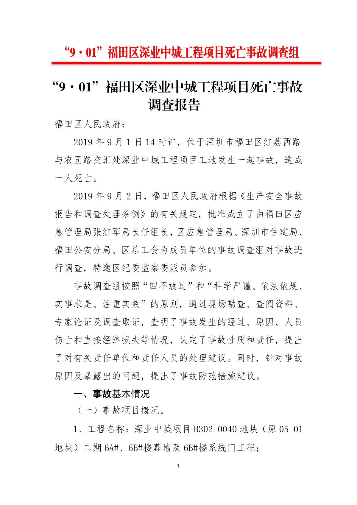 “9.01”福田區(qū)深業(yè)中城工程項(xiàng)目死亡事故調(diào)查報(bào)告