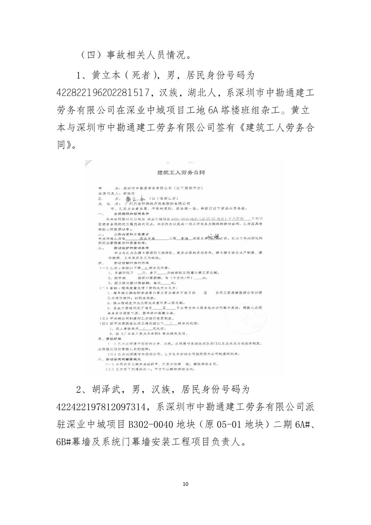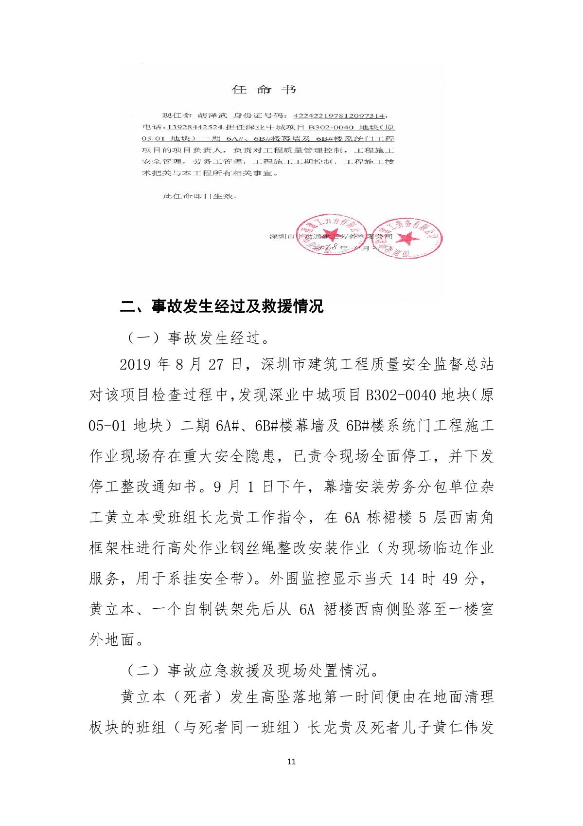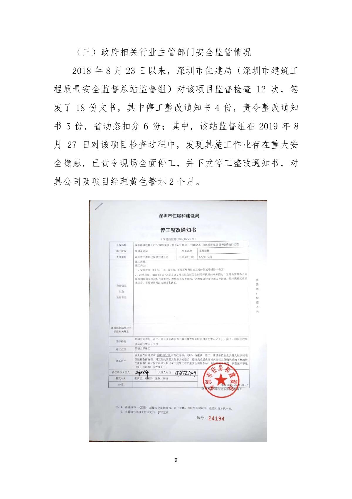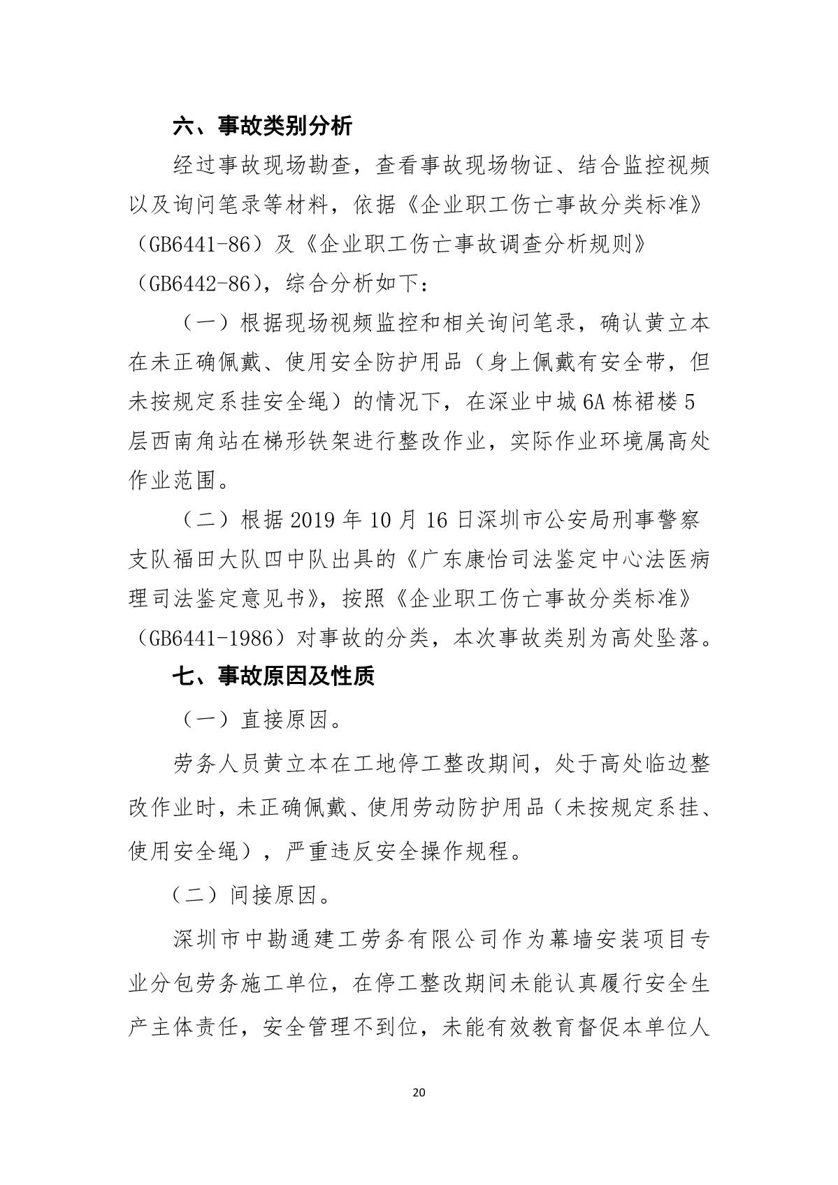 “9.01”福田區(qū)深業(yè)中城工程項(xiàng)目死亡事故調(diào)查報(bào)告