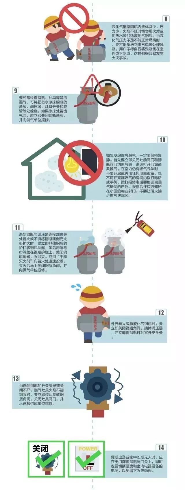液化氣罐爆炸很可怕,安全使用液化氣罐很重要。所以,除了掌握上面的安全知識,液化氣罐周身遍布銹跡和油漬、用手搖晃液化氣瓶、將液化氣瓶傾斜放置、將液化氣罐放入熱水盆…這些事也萬萬不要做了!