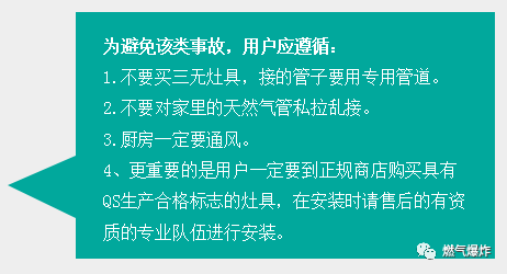 2012年7月27日重慶奉節(jié)縣一居民家發(fā)生天然氣意外泄漏事故,發(fā)生事故的居民家中所有家具和電器都被燒毀,窗戶的玻璃已被震爛。爆炸造成一家6人燒傷,最終一人搶救無效死亡。據(jù)網(wǎng)上報道爆炸是由于天然氣管道與輸氣軟管之間存在縫隙,導(dǎo)致天然氣泄漏引發(fā)的。在該戶家中,發(fā)現(xiàn)新買的燃氣灶具,是個三無產(chǎn)品。該戶的燃氣管道,是由兩根軟管接起來的,一根軟管不夠長,中間還用一根硬塑料管連了起來,還使用了膠水來粘接,這是非常危險的作法,連接的塑料管是硬的,天然氣完全可能因連接處泄漏出來。也許是用戶點了火,也許只是開了某一種電器的開關(guān),就引起了天然氣爆炸,隨后的火焰擴散,屋內(nèi)東西全部燒毀。