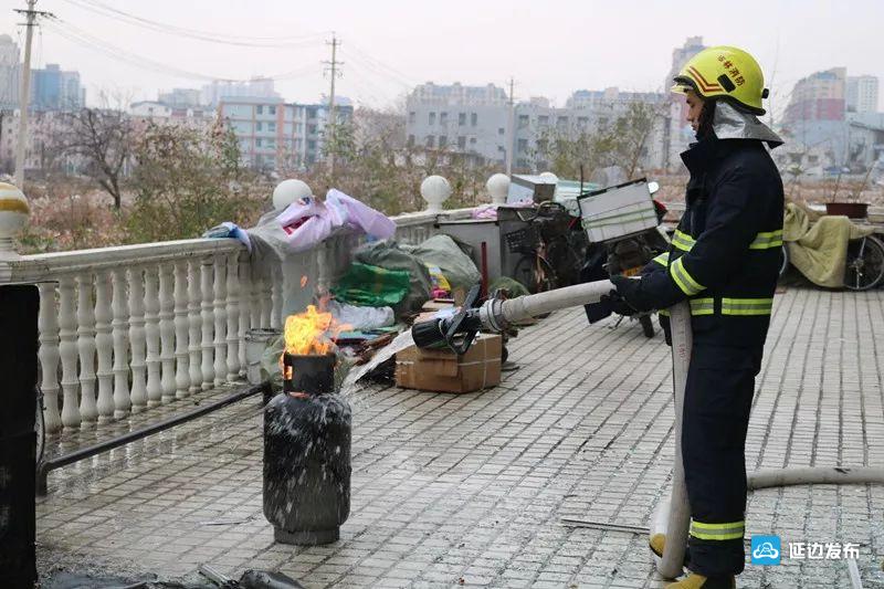 無(wú)獨(dú)有偶,就在這起事故發(fā)生的前兩天,11月13日,在延吉一小區(qū)內(nèi),也發(fā)生了一起煤氣罐著火事件。