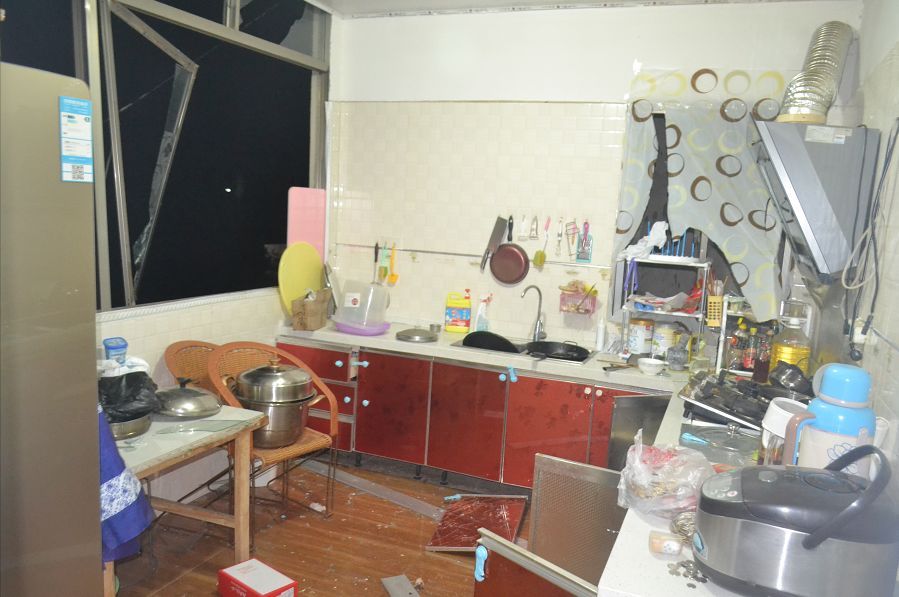 爆炸點(diǎn)位于新村鎮(zhèn)一村民楊某某家中的廚房,現(xiàn)場(chǎng)一片狼籍,窗戶(hù)也已經(jīng)飛出窗外。幸運(yùn)的是,爆炸發(fā)生時(shí)沒(méi)人在現(xiàn)場(chǎng),未發(fā)生人員傷亡。