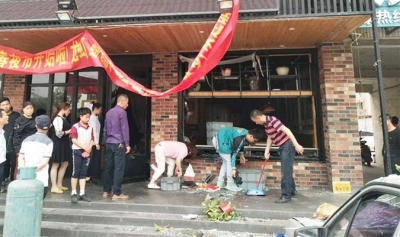 臨街對門的一家店鋪經(jīng)營者告訴記者,事發(fā)時(shí),聽到院子里動(dòng)靜比較大,他趕緊出來察看,發(fā)現(xiàn)餐館的櫥窗已經(jīng)飛出去了?!暗觊T口停著兩輛車,行人繞著車走,飛出來的玻璃砸在車上,沒有傷到路人。事故發(fā)生時(shí),正好餐館下午休息,店里沒有消費(fèi)者,員工也下班了,未造成人員傷亡?!?/div>