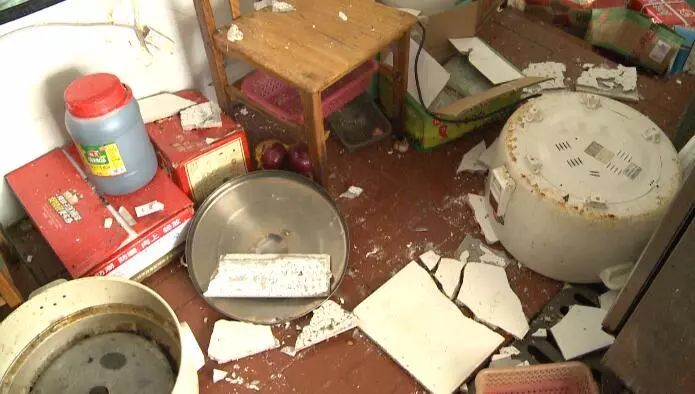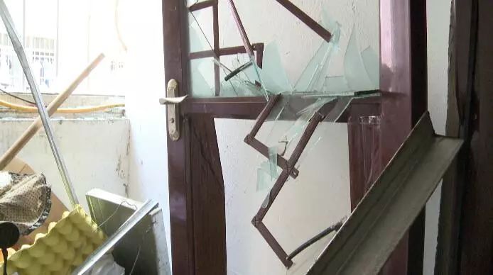 我婆婆就在這里開(kāi)門(mén)出來(lái),馬上就爆炸,飛到里面去了玻璃啊,我掃了這里啊,不然全部是玻璃,樓上的玻璃都爛下來(lái)了。
