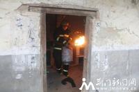 8時30分,消防官兵到達現(xiàn)場,據(jù)現(xiàn)場偵察情況發(fā)現(xiàn),房屋內(nèi)一煤氣罐正向外噴射火焰,引燃了灶臺上的許多物品,煤氣罐隨時可能發(fā)生爆炸,造成人員傷亡,情況十分危急。消防戰(zhàn)斗員慕晨曦沒有絲毫猶豫,立即將手套打濕,一把抱起著火的煤氣罐就往外跑。屋外正飄著小雨、刮著風,雖然戴著消防頭盔,可火焰擦過,還是燙紅了他的臉龐。小跑至空曠地帶后,慕晨曦才將煤氣罐放下,消防官兵們連忙對罐身噴水降溫,并用濕抹布蓋滅火焰,關(guān)閉閥門。在撲滅屋內(nèi)殘火并確認煤氣罐無復燃可能后,消防官兵收整器材返回。