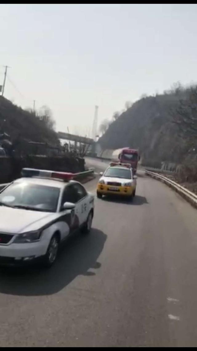 因事發(fā)地為當(dāng)?shù)鼗睒滗伌宕迕窬幼∠鄬γ芗瘏^(qū)域,一旦有火點(diǎn)引發(fā)爆炸,后果不堪設(shè)想。經(jīng)現(xiàn)場民警、消防人員與該車駕駛員和押運(yùn)員商定后,決定采取由警車、路政巡邏車在前方帶道,該?;奋嚲o隨其后,消防車在尾部觀察警戒的方式,駛向距離晉冀交界6公里下高速且人員相對較少的開闊場地再進(jìn)行處置。