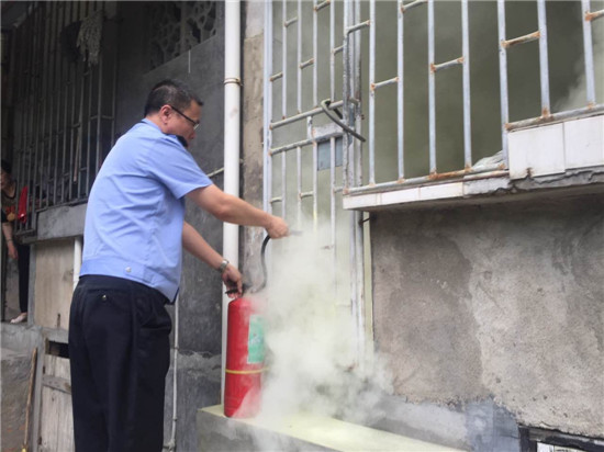 見狀,民警一邊組織警力疏散圍觀群眾,一邊用滅火器從窗口處進行滅火。所幸,該煤氣罐所剩煤氣不多。經過民警及時滅火,終于將火勢控制并撲滅。為防止二次事故發(fā)生,滅火后,民警又將煤氣罐扛出,放置于小區(qū)空曠位置,并聯(lián)系煤氣銷售公司的安全檢查人員前來徹底消除隱患。